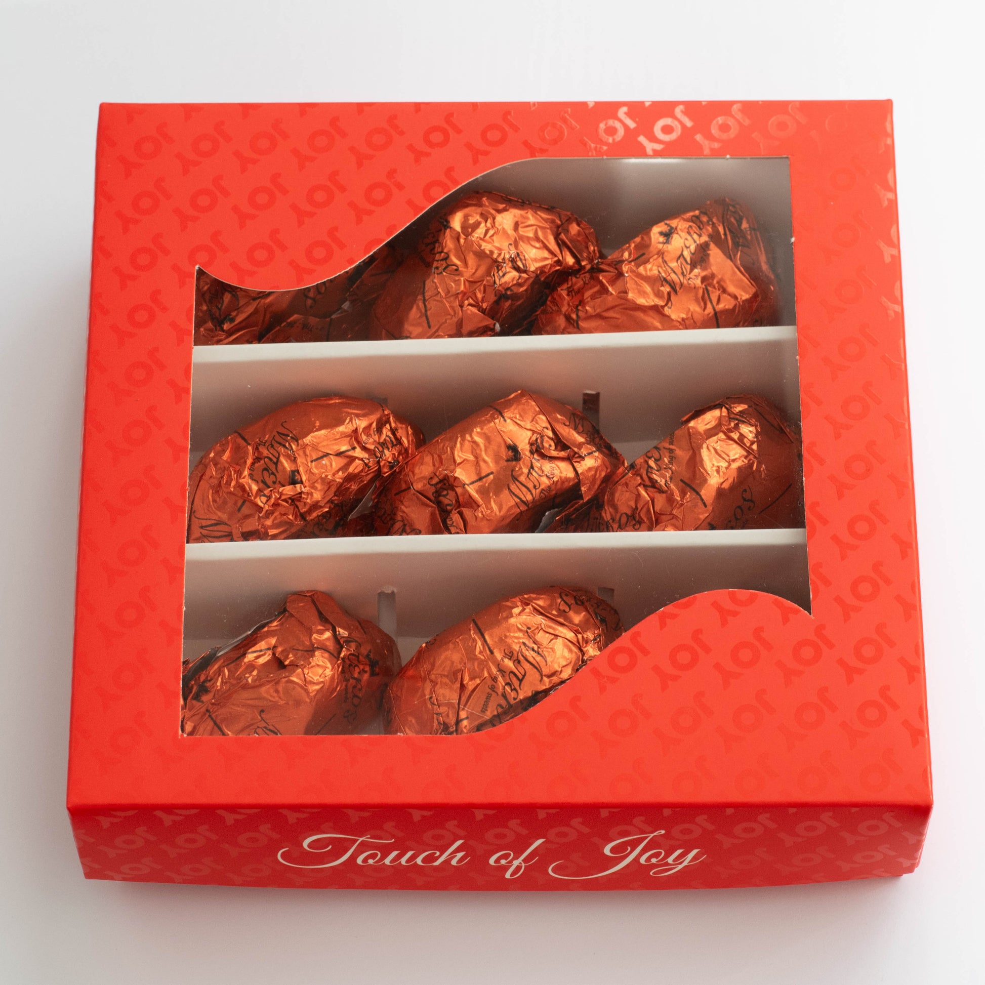 Bomboanele noastre sunt făcute manual, astfel intr-o cutie mare sunt 21 de bomboane ce reprezintă aproximativ 1kg, iar într-o cutie mică sunt 9 bomboane ce reprezintă aproximativ 400g.