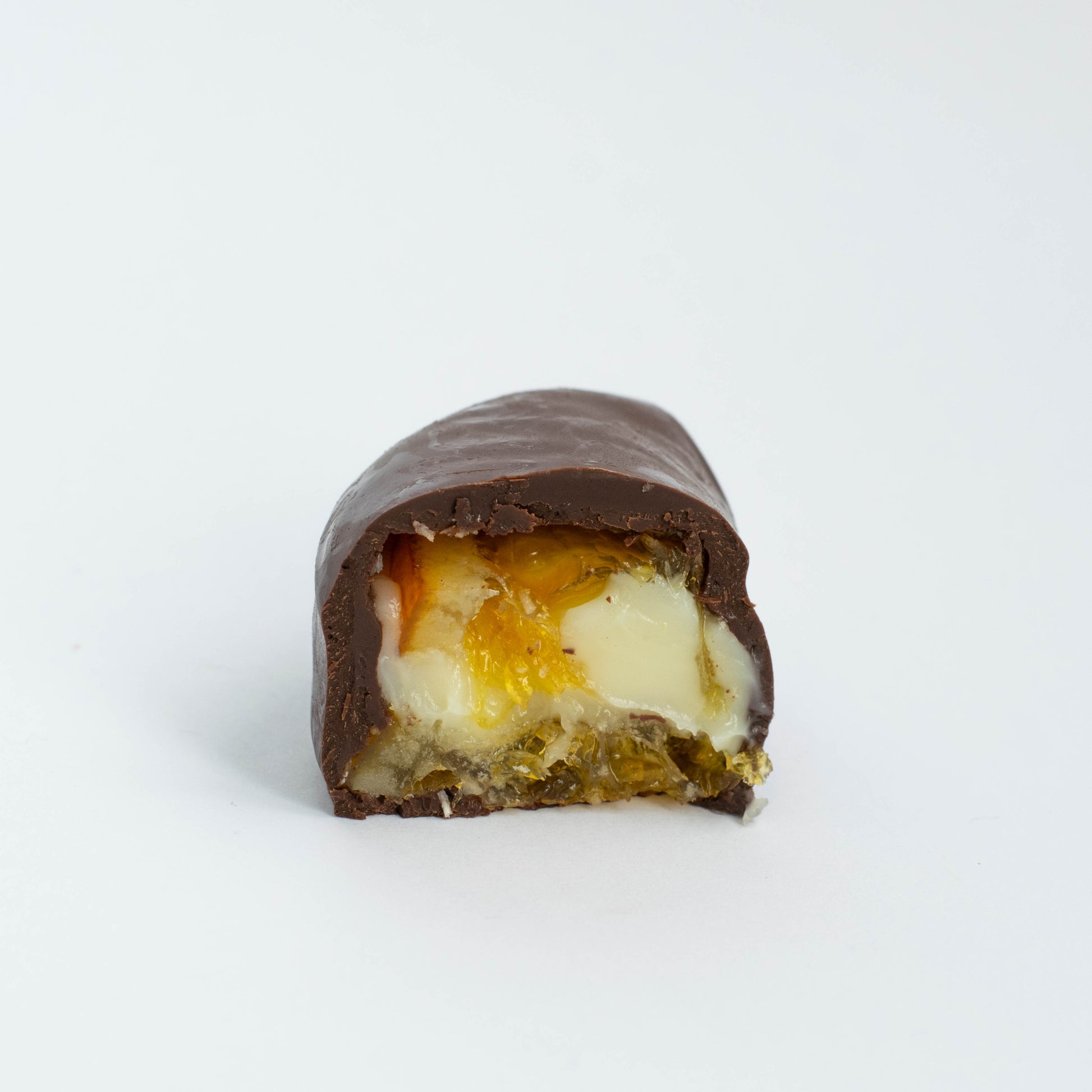 Descoperă deliciul feliilor de portocale confiate, care oferă un gust fructat și revigorant care se îmbină perfect cu crema delicioasă și cocosul, oferindu-ți o senzație irezistibilă.