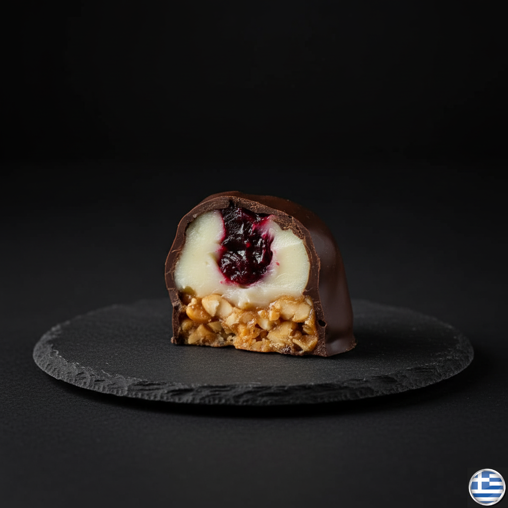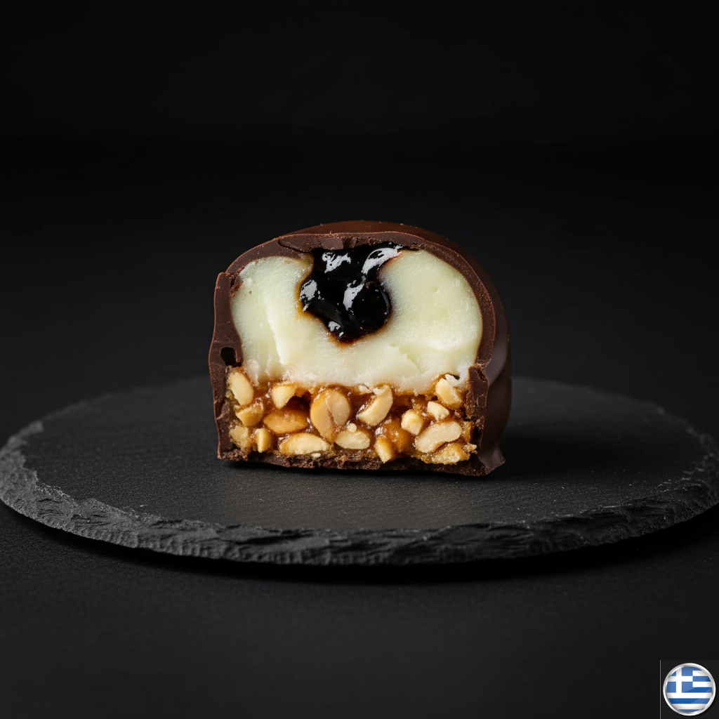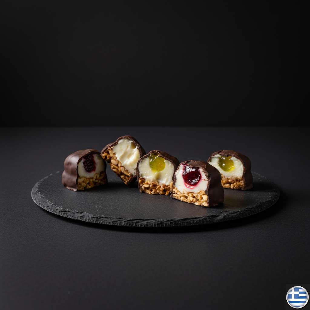 Bomboane Grecești cu Ciocolata Neagra Vegane cu Gem (De Post)